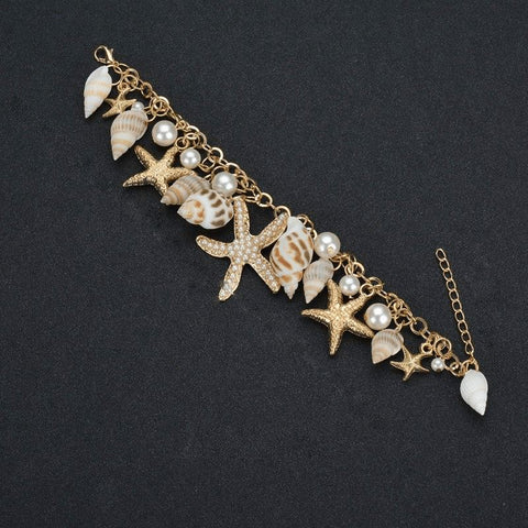 Elegance and sophistication radiate from this multi-strand shell bracelet! This accessory is adorned with various shells gathered from the sea or beach, including a starfish charm that will bring you luck in all you do. Among the charms, you'll also find conches and other delicate and original beige shells of great beauty.