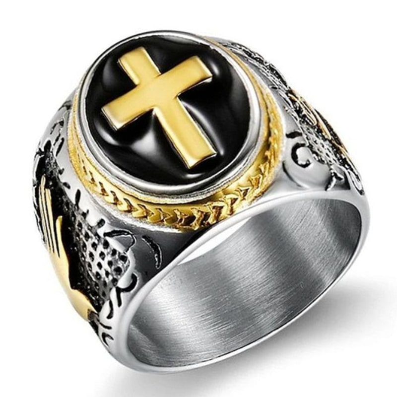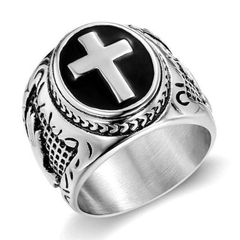 This steel signet ring with a cross is more than just an accessory — it's a statement. The striking design of this men's ring catches the eye, yet it's discreet enough for everyday wear. It's time to make a bold statement with this unique ring.