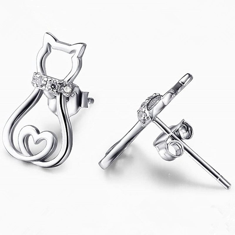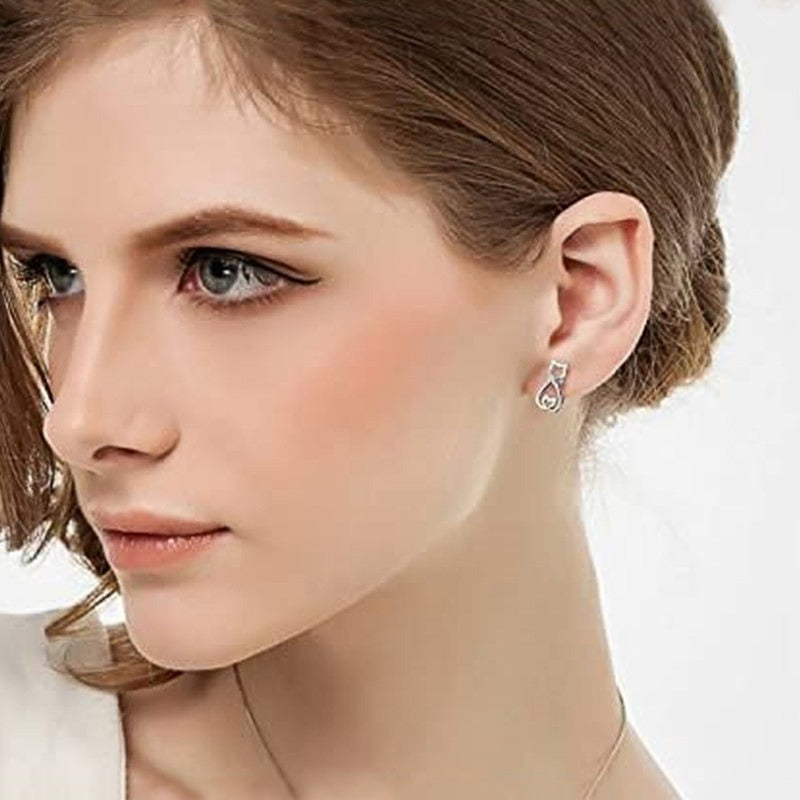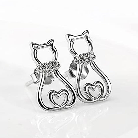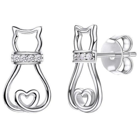 These stunning silver and rhinestone cat earrings perfectly showcase your passion for this adorable feline! They also make an excellent gift idea for those who love their cat.