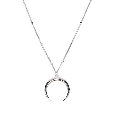 If you're not going to reach the moon, at least you can have a piece of it. Order your piece now by choosing this stunning silver half-moon necklace.