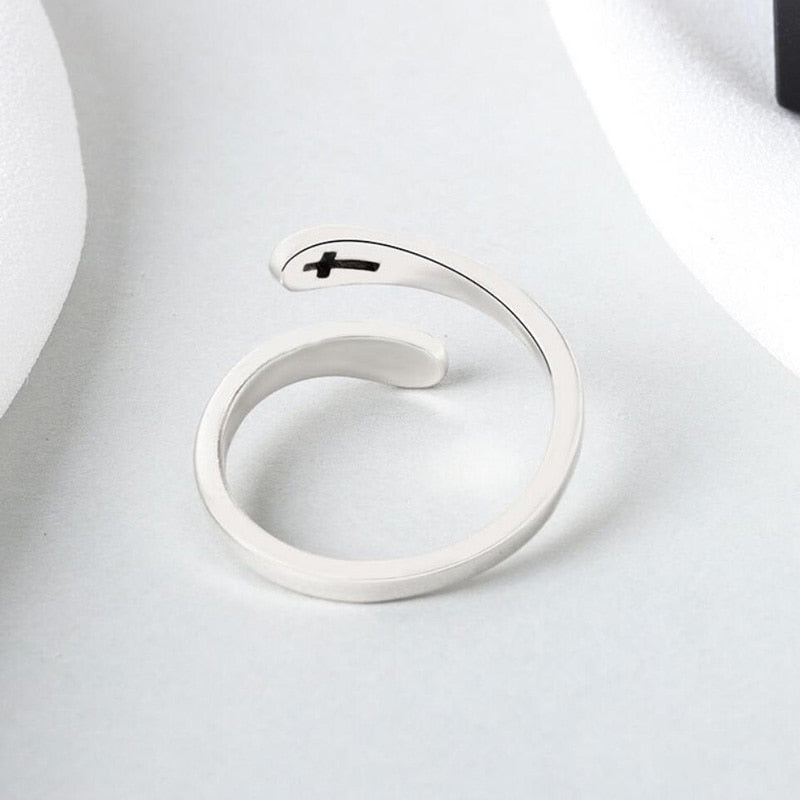 High-quality silver cross-engraved ring featuring a beautiful Christian cross.