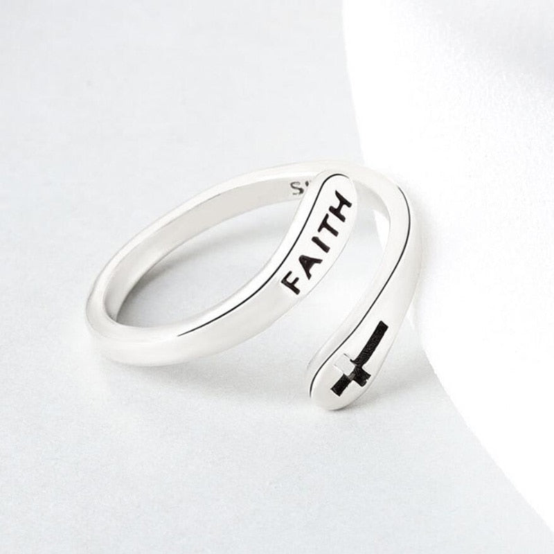 This beautiful, original, and stylish 925 sterling silver ring is a daily reminder of your love for Christ. On one end of the ring is a finely engraved magnificent Christian cross, and on the other end, the word "Faith" is embossed. In harmony with your Christian devotion, this high-quality ring brings you all the love and protection of Christ.