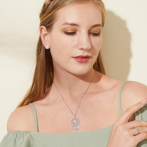 Charming silver dream catcher necklace with a luxurious design.