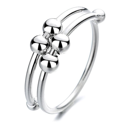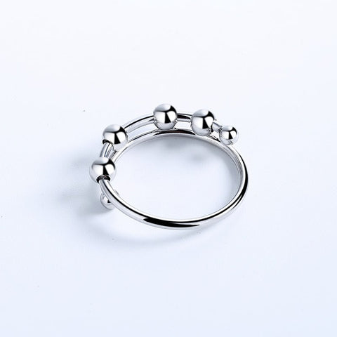 This silver fidget ring is a must-have addition to your collection! The ring consists of small spheres that rotate around the band, allowing you to relax. The design of the jewellery is elegant enough to be worn every day.