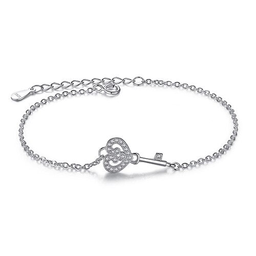 This heart-shaped key pendant bracelet is the perfect jewellery piece to gift to a loved one. Crafted from high-quality silver, the bracelet is durable and resistant to wear. It showcases a checkered pattern finish, giving it an elegant and sophisticated appearance. With a length of 19cm and a width of 2cm, it fits perfectly on any wrist. The lobster clasp keeps the bracelet securely in place, and its classic and exquisite look will make anyone who receives it truly appreciate this piece. The jewellery's design symbolises the key to the heart and represents platonic or true love for the ideal partner. Gift this charming love jewellery, one of the most desired presents for birthdays or Christmas, to seal your deepest feelings for your loved one!