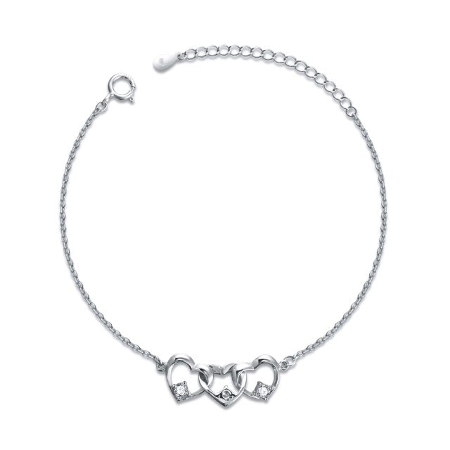 The stunning Trio Heart bracelet is made from high-quality silver. It is composed of three overlapped hearts, finished with a sparkling polish, creating a piece that is both elegant and striking. Each heart is a different size: the central heart is the largest and is flanked by two smaller hearts. It is the perfect piece of jewellery, offering timeless elegance thanks to its unique and bold design. Be seduced by this three-heart bracelet that attracts all the attention with a classic style you'll enjoy for years! Add an immediate touch of glamour to your look with this masterful piece, ideal for any occasion, special or everyday. Try the Trio Heart bracelet to complement your look in an instant - whether it's casual or sophisticated - and subtly show off your style!