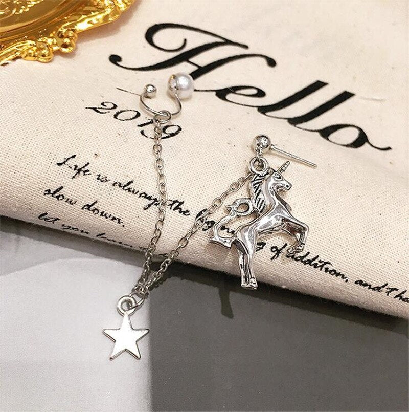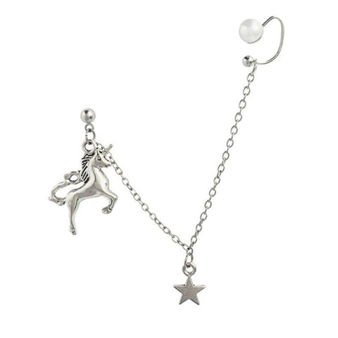 The hanging unicorn earring (silver) can be worn on one side only, adding a touch of originality. Personalise your hairstyle to stand out even more.