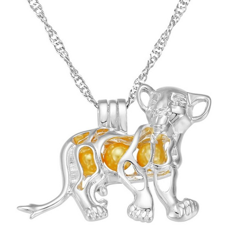 Beautiful Simba pendant necklace in steel — to accompany the wildest Lion King on the journey of his life. Necklace with heart-shaped pendant and pearl, a charming detail for women.