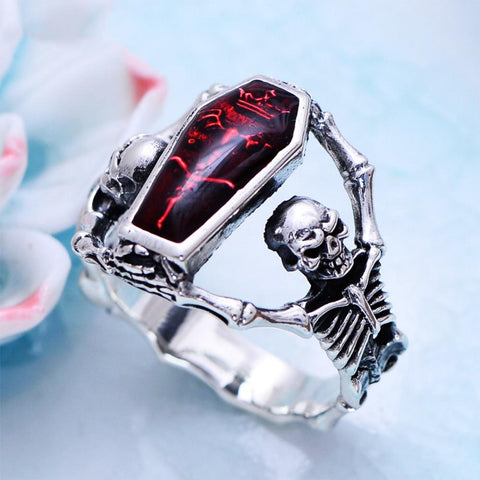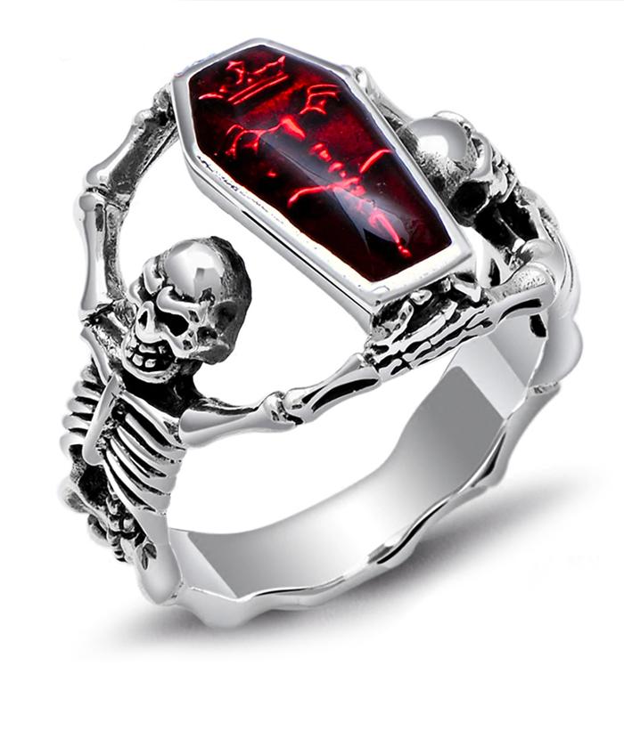 Bold design in this silver skeleton ring, with a magnificent fire-coloured stone engraved on top. A brilliant way to assert your personal style!