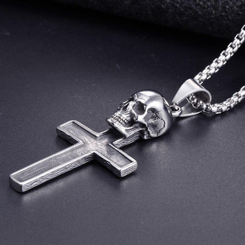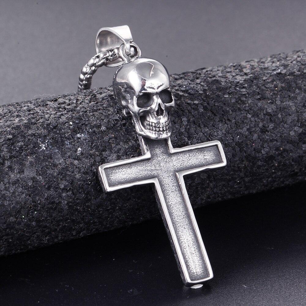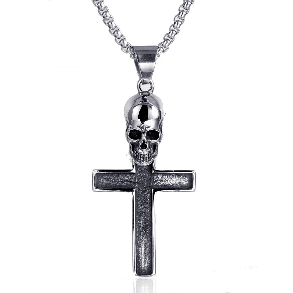 This imposing Death Skull necklace features a pendant in the shape of a Christian cross of Jesus Christ, made from high-quality steel. Live under the Lord's protection at all times!