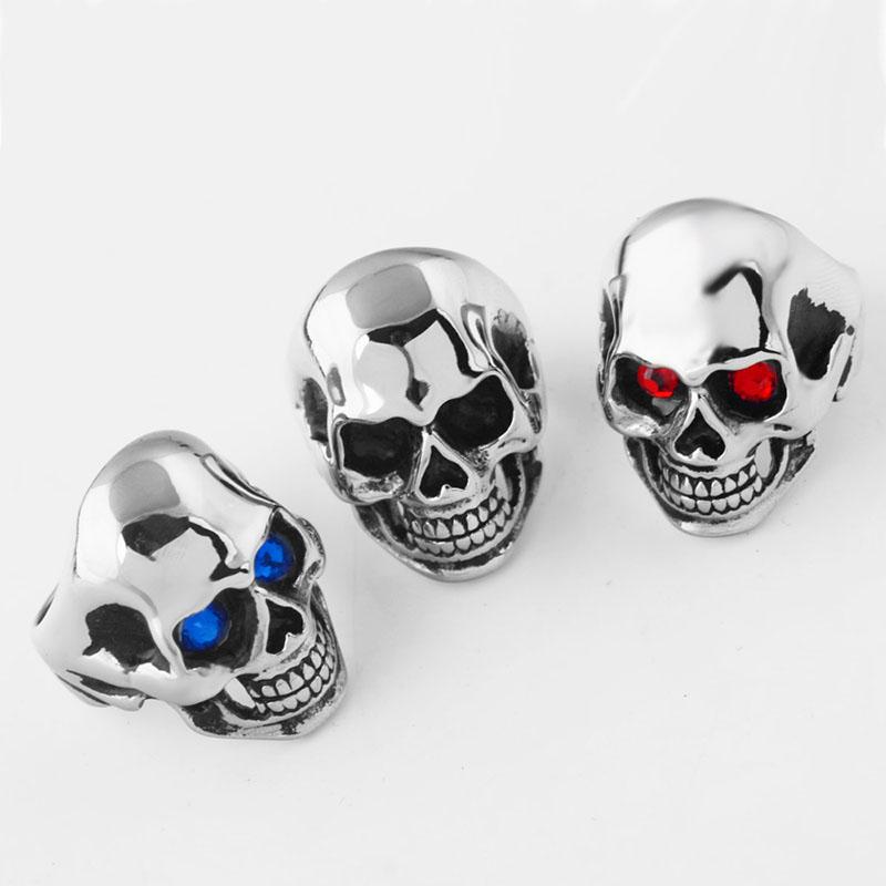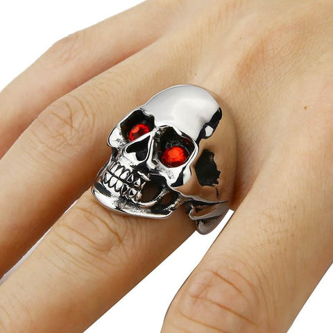 Do you like a biker, gothic, punk, or rock look? Then this Skull Ring with colourful eyes is for you. It's uniquely designed to be a truly original piece.