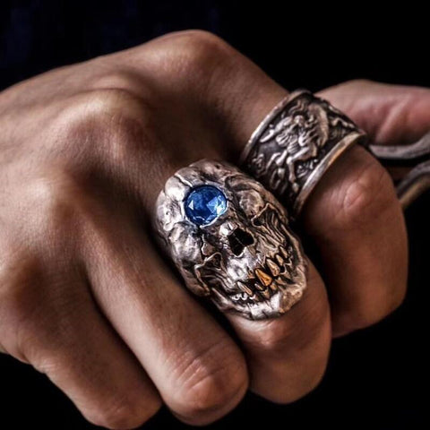 This is what happens when you toy with souls and, more generally, with forces that are beyond your reach. These unfortunate people have lost the use of their eyes, and a precious stone was embedded in their eyes, exactly like in the center of this diamond skull ring.