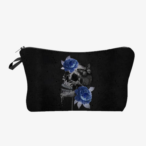 - Unique skull and blue roses pattern: The skull and crossbones design adorned with blue roses adds an intriguing touch to the toiletry bag.