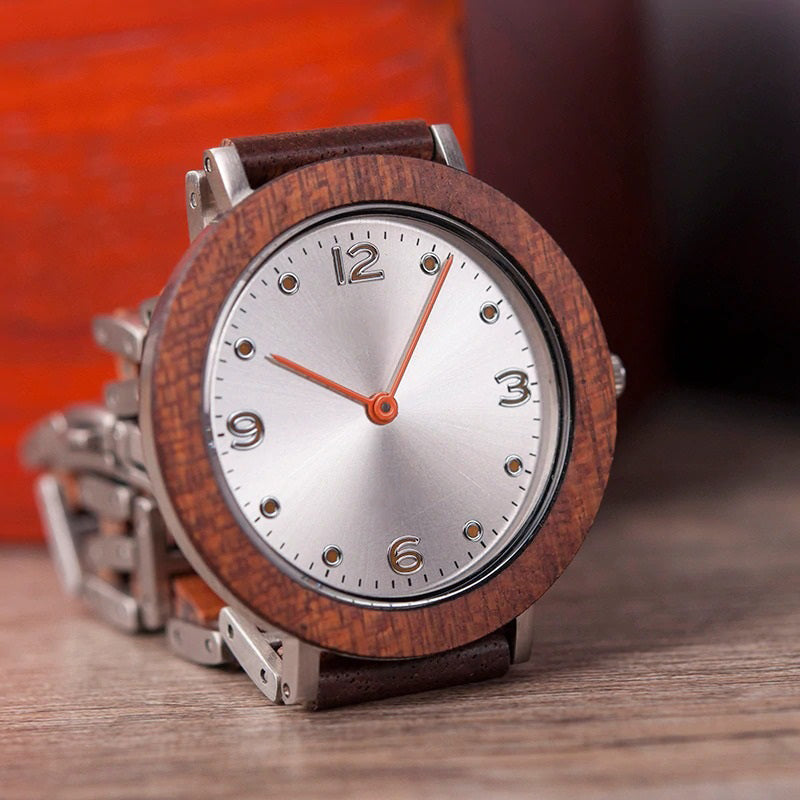 This exquisite wooden watch is perfect for everyday use. The quartz watch is reliable and durable. The minimalist yet modern design is suitable for both men and women.