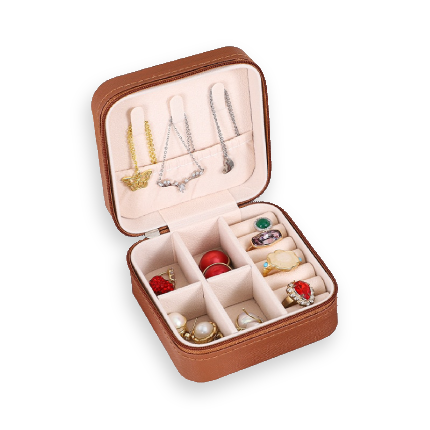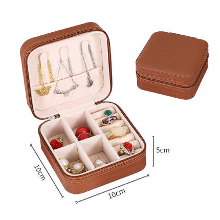 Protect the shine of your precious Small Jewellery Box by choosing this elegant jewellery case. The lid is crafted from high-quality materials to offer both style and durability, keeping your treasures safe. Inside, soft velvet-lined compartments prevent scratches and damage. It also features small drawers and hooks to hang your necklaces and bracelets, while rings and earrings can be securely stored as well. Thanks to its compact size, this accessory fits easily into a handbag or suitcase, making it an ideal companion for keeping your jewellery organised on the go. Whether at home or while travelling, this Small Jewellery Box provides a practical and stylish storage solution.
