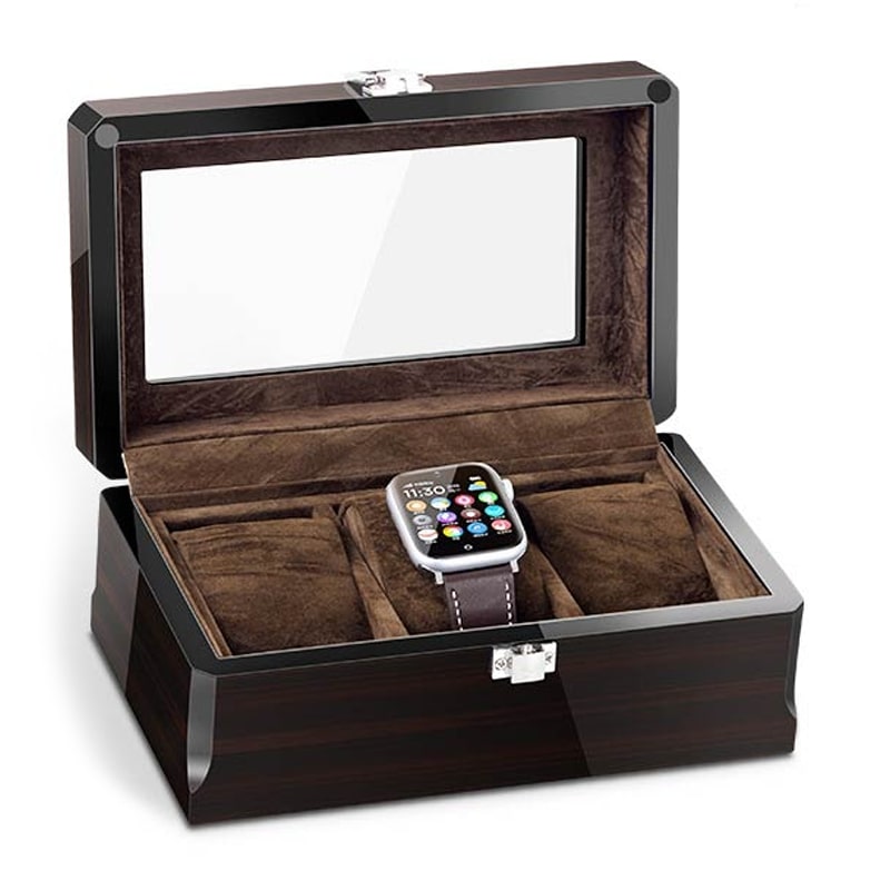 Are you on the hunt for a wooden watch box? This small watch box for 3 watches is perfect for small collections. Its glossy finish accentuates your valuable watches. Your branded watches deserve to be stored in a beautiful wooden watch box. If you have a small collection of watches, this model is more than sufficient.