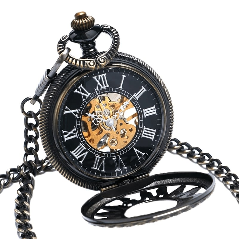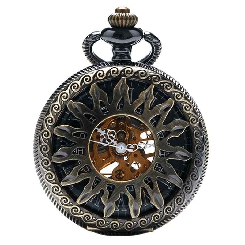 This sun pocket watch is exactly what has been missing from your collection! Source of life, centre of the world, star of day and light, associated with fire and gold, the sun is a divine symbol of creative strength. Thanks to the skeleton case, you can admire the pocket watch mechanism as it ticks with time and brings the hands to life.