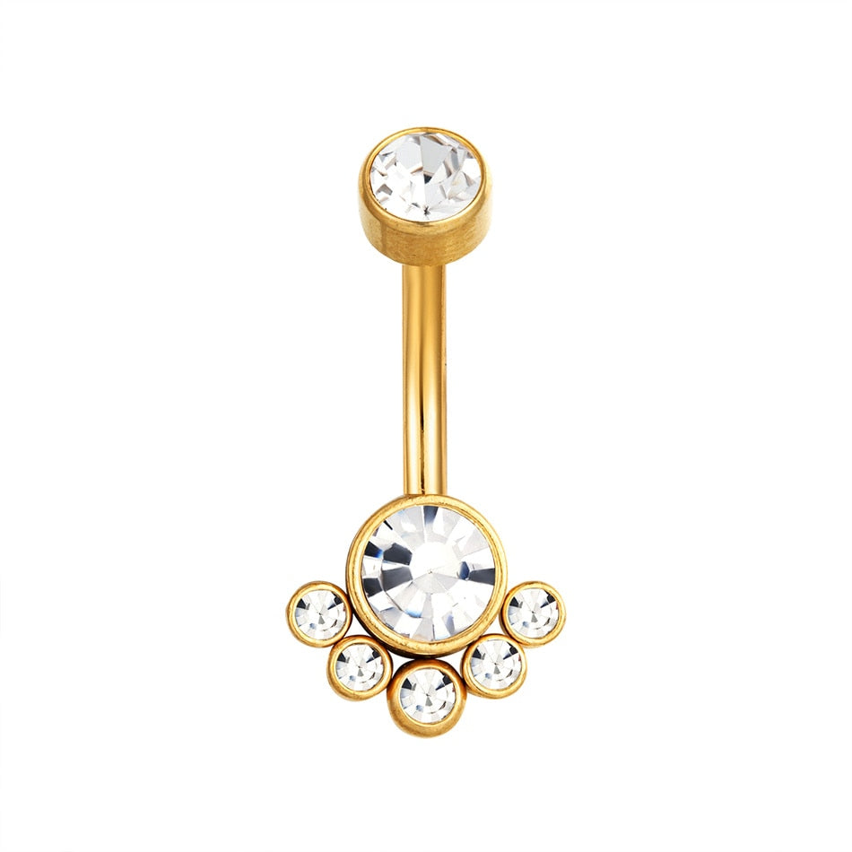 Add a touch of sophistication to your look with this modern belly button piercing. Perfect for any occasion, this delicate piece of jewellery adds a subtle elegance to your style.