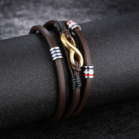 This sophisticated infinity bracelet is perfect for the man who is seeking something simple, yet robust. With the golden stainless steel infinity symbol, this accessory is truly unique and striking.