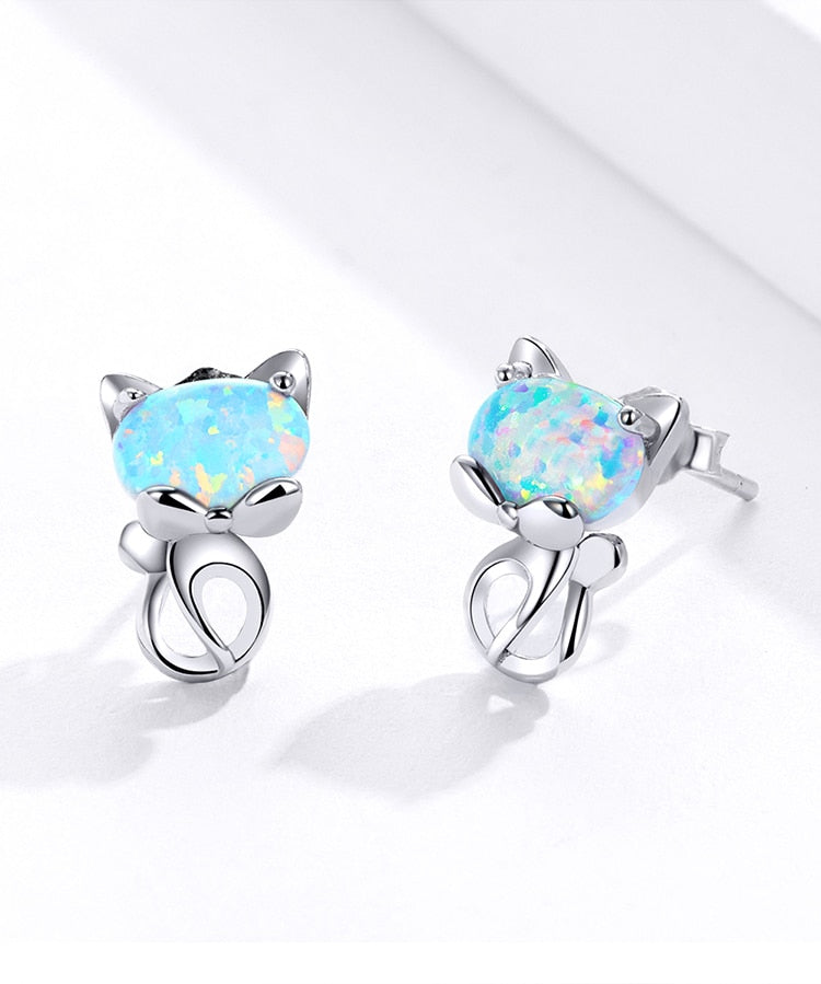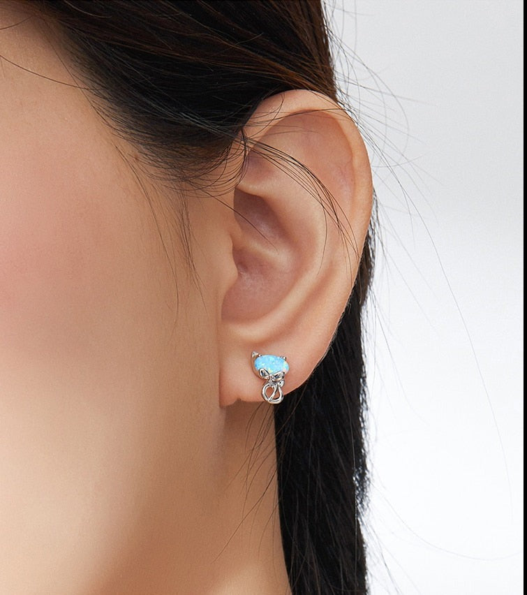 Looking for a way to add a touch of fun and personality to your wardrobe? Discover these stunning Brilliant Cat earrings! The head is made from a beautiful blue zirconium crystal and the body from bright silver.