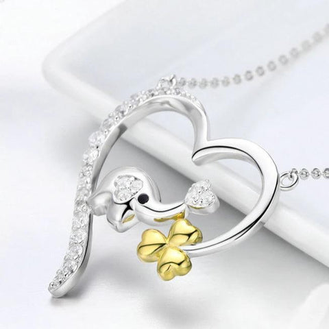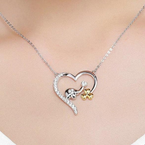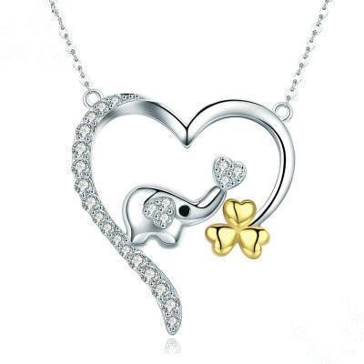 Here is our necklace with a heart-shaped pendant, featuring a small elephant inside and decorated with dazzling white crystals. A jewel for sensitive and thoughtful women.