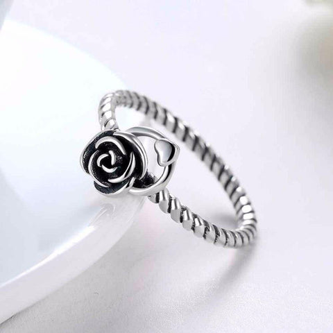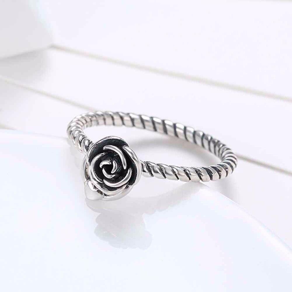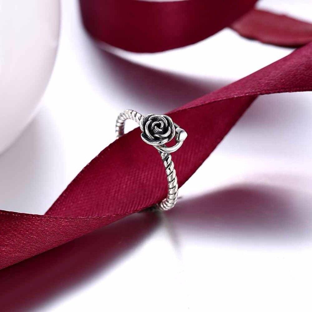 This high-end ring is delicately intertwined and features a magnificent rose with detailed finishing. Its fine and durable metallic alloy provides unique comfort on the skin.