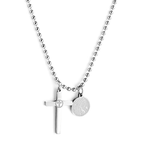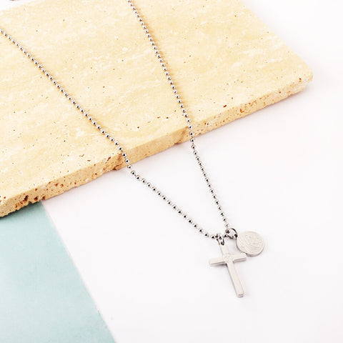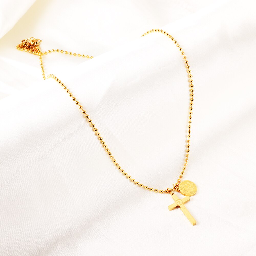 This magnificent necklace with a cross and medal pendant is the perfect way to treat yourself! This stunning piece is ideal for adorning your neck with hope.