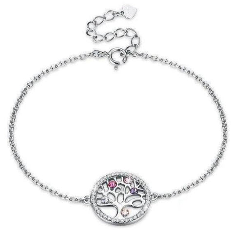 Highlight your passion for exquisite fashion accessories with this stunning Tree of Life bracelet in sterling silver! This symbolic jewel offers an elegant and refined style, conveying a zest for life and positive energy to those who wear it. To ensure a perfect fit to the wrist, the Tree of Life bracelet features an adjustable design and a beautiful lobster clasp! With the Venetian link chain and decorative crystals on the medallion, this piece becomes even more charming. You can wear it alone or pair it with other jewels from the same category – the result will always be impeccable.