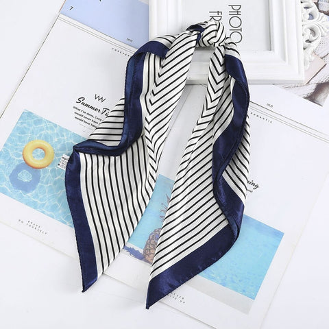 A unique striped hair scarf, inspired by the marinière style in navy blue. This scarf evokes a seaside holiday with a touch of elegance.