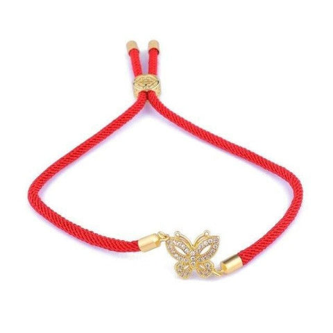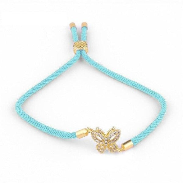 This butterfly bracelet perfectly complements both elegant and casual looks. It is available with a cord in red, black, blue, or cyan, and with a butterfly pendant in silver, gold, or rose gold.