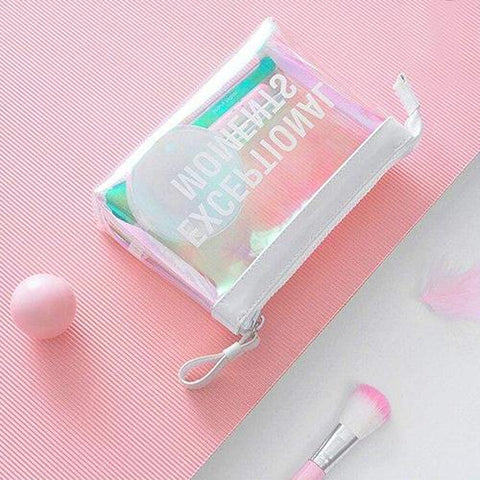 Above all, the teenager's makeup case is easy to carry. It's extremely practical and can hold the main makeup accessories for applying makeup anywhere, at any time. It's a stylish and beautiful case, which will immediately attract the attention of your friends as soon as they see it — they might even want to keep it! Its transparent appearance and rainbow colours stand out at sight and give it a unique and own aesthetics.