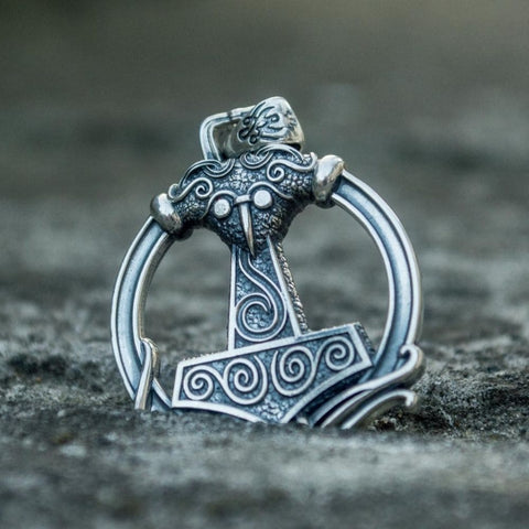 This silver necklace features the famous Thor's Hammer. Thor's Hammer was a powerful symbol of protection. In archaeological excavations, numerous pendants with the thunder hammer have been found.
