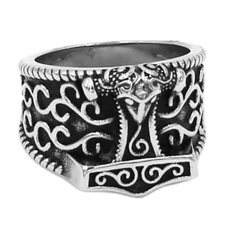 This ring, decorated with the famous Thor's hammer, symbolises the absolute power contained within this divine weapon. This steel ring with the representation of Mjolnir's hammer is the ideal accessory for all lovers of Norse culture.