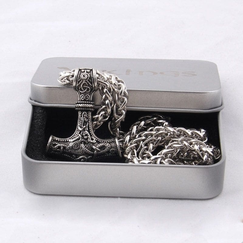 This Viking steel necklace with a Mjölnir pendant is a favourite amongst Vikings, as they recognise the artistic motifs of Scandinavian culture. This necklace, forged in the shape of Thor's hammer, reminds Vikings that they should value Nordic culture and values.
