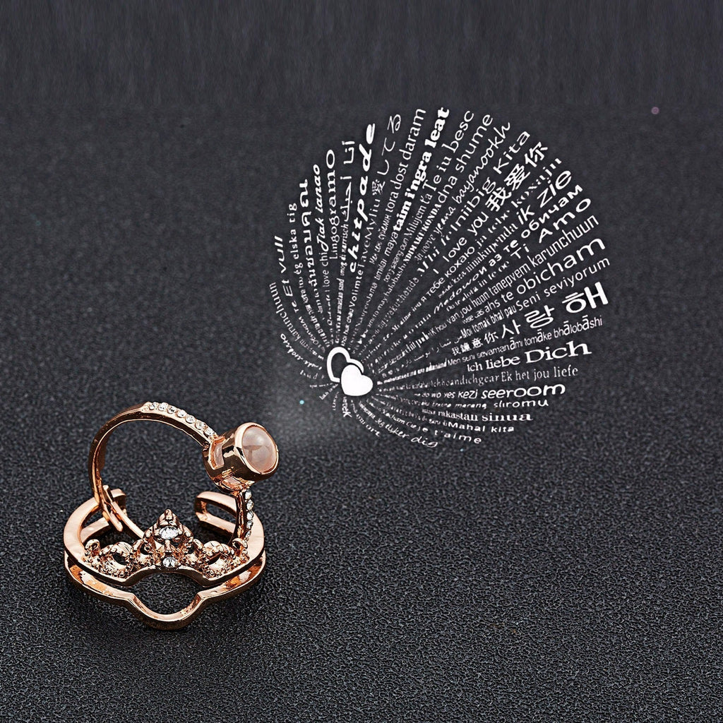 This ring is also quite special — it's a custom "technological" ring, with a message on top. The love message is "I love you", included in 100 languages.