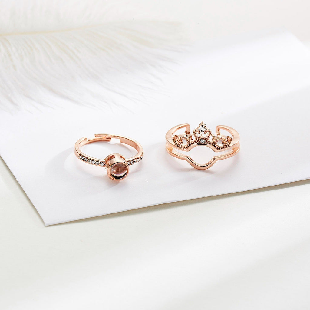 This tiara crown-shaped ring has an elegant design that gives it a luxurious look. The set consists of 2 separate rings that form a single piece of jewellery. The ring is adjustable.