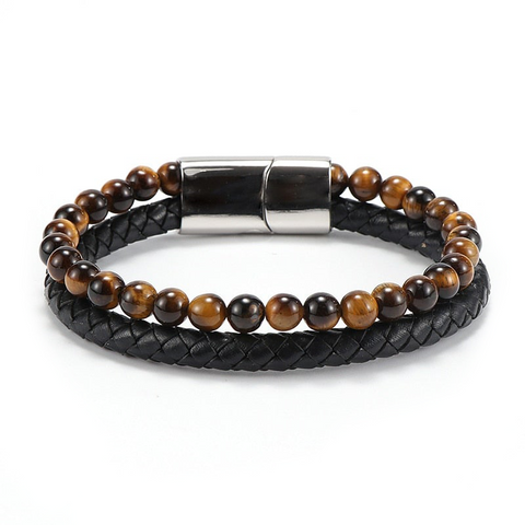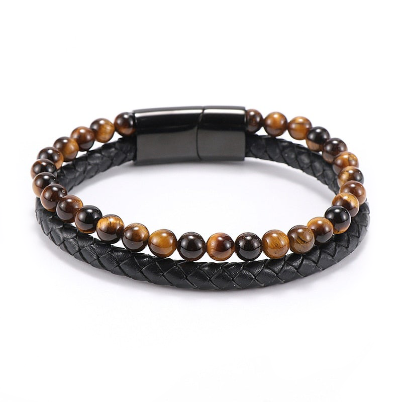 The Tiger's Eye is known as the stone of courage and self-confidence, helping to overcome fears and doubts. Combined with leather, a symbol of durability and longevity, this bracelet is the ideal companion for all life's adventurers.