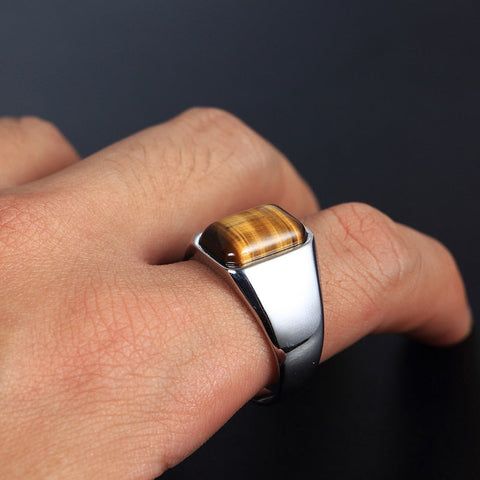 Charming Tiger's Eye Square Ring, suitable for men or women.