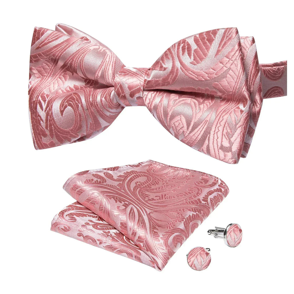 This pink bow tie exudes a subtle elegance and refined sophistication. The delicate paisley pattern and light pink tone lend a distinctive touch to any ensemble. Made with high-quality materials, this accessory offers maximum comfort and reflects a timeless style.