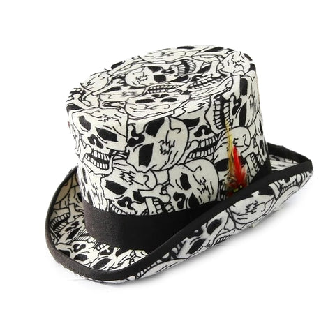 This top hat with a unique style is the ideal accessory to add a touch of mystery and sophistication to your outfit. Whether you intend to portray a magician, a gentleman from a different era, or a spooky figure, this hat is for you. It's perfect for Halloween! Made from high-quality wool felt, this hat looks great and is comfortable to wear.