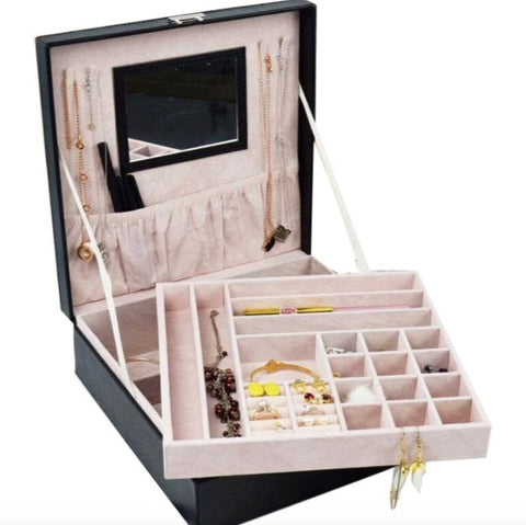 This Traditional Black Jewellery box is perfect for fans of unique and removable fantasy accessories, featuring a two-level compartment design.