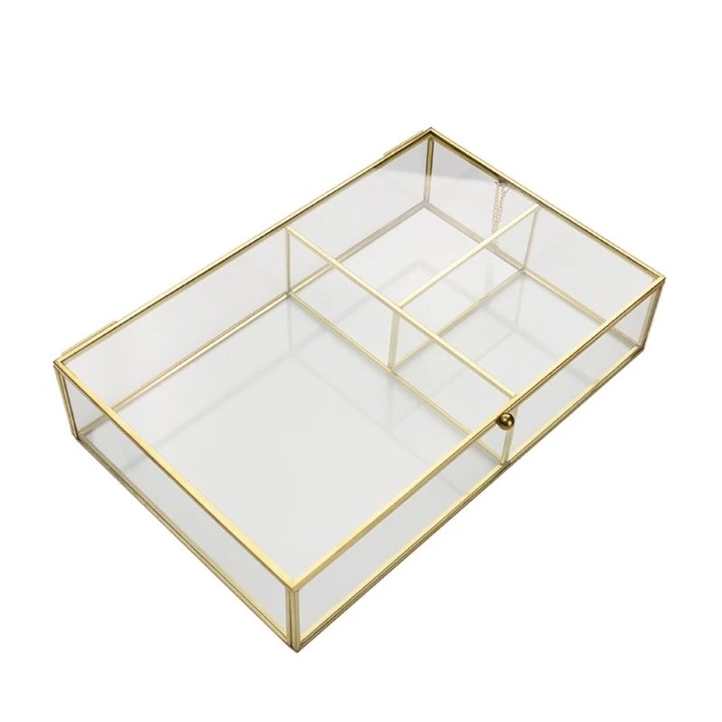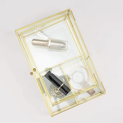 Transparent Glass Jewellery Box with Brass Fittings – Showcases the Beauty of Your Collection While Keeping It Organised and Protected from Bumps