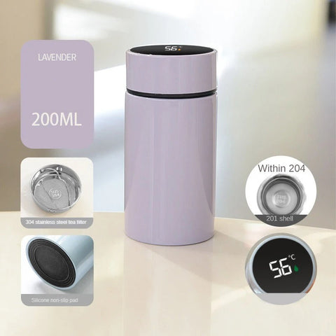 This travel cup with thermometer is a unique choice for those who value the perfect temperature of their beverage. The cup has a digital display that accurately shows the temperature of the drink, allowing you to enjoy tea or coffee at the ideal temperature. With its reduced capacity of 200 ml, it's the most compact option in the collection, perfect for quick and carefully planned tea moments.