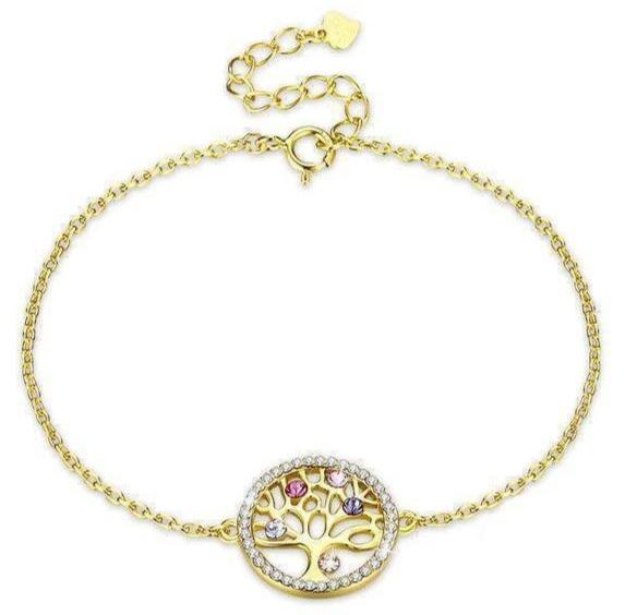 Fall in love with this stunning gold bracelet with the symbol of the tree of life, ideal to complete your look and highlight your wrist! A source of serenity and fulfilment, the sacred plant behind this symbol gives you that same energy. You can wear this gold Tree of Life bracelet to feel closer to your loved ones, even when they are far away. Take advantage of its 925 sterling silver design to adorn your look with elegance and sophistication. The gold finish adds even more style to your outfit. This silver bracelet with the Tree of Life features a round medallion with a decorative coloured stone, and its size is adjustable to perfectly fit any wrist.
