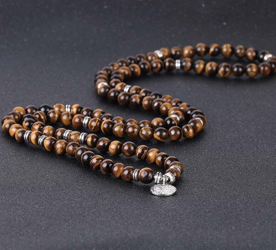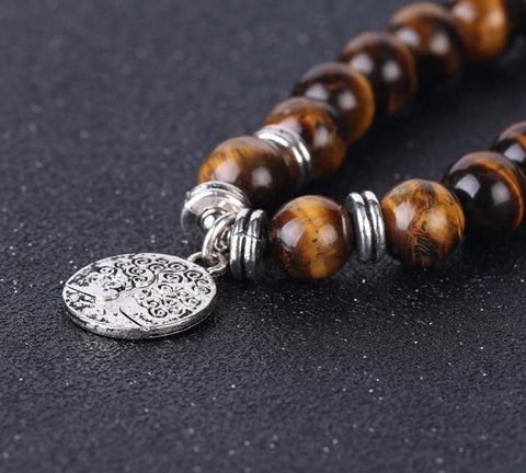 If you're looking for a piece of jewellery that protects you from negative energies, let yourself be captivated by this magnificent Tiger Eye Mala Bracelet with 108 Beads. This bracelet featuring a tree of life is an exceptional ally that prevents bad vibes from blocking your progress and the accomplishment of your projects (whether spiritual or personal). This protective stone also brings balance to your life by harmonising your inner yang and yin. This stunning tree of life bracelet can be worn daily and adds charm and elegance to your look.