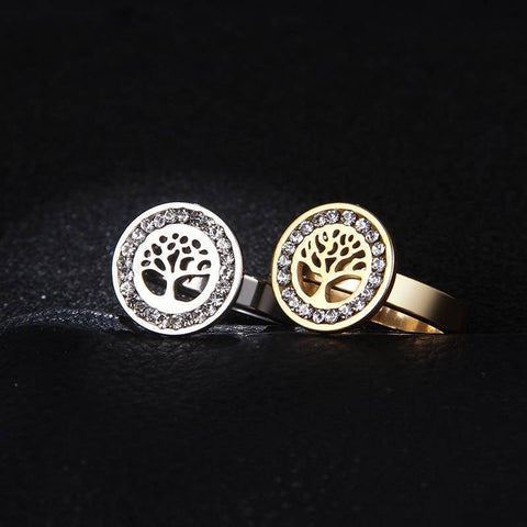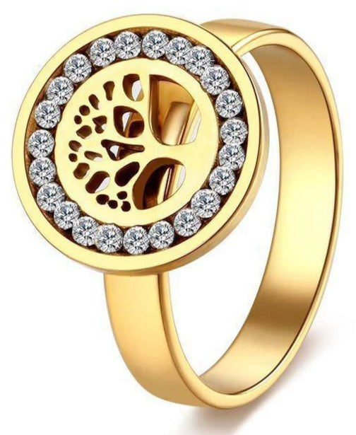 This stainless steel Tree of Life ring is adorned with crystals around the edges to enhance its beauty! Subtle and elegant!