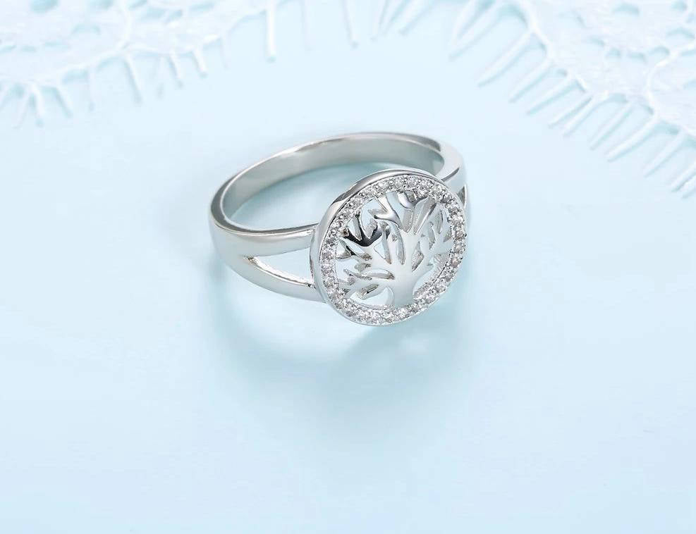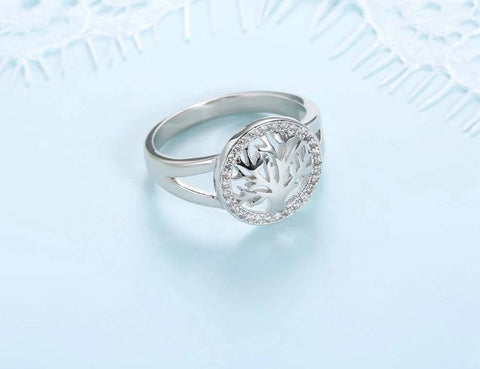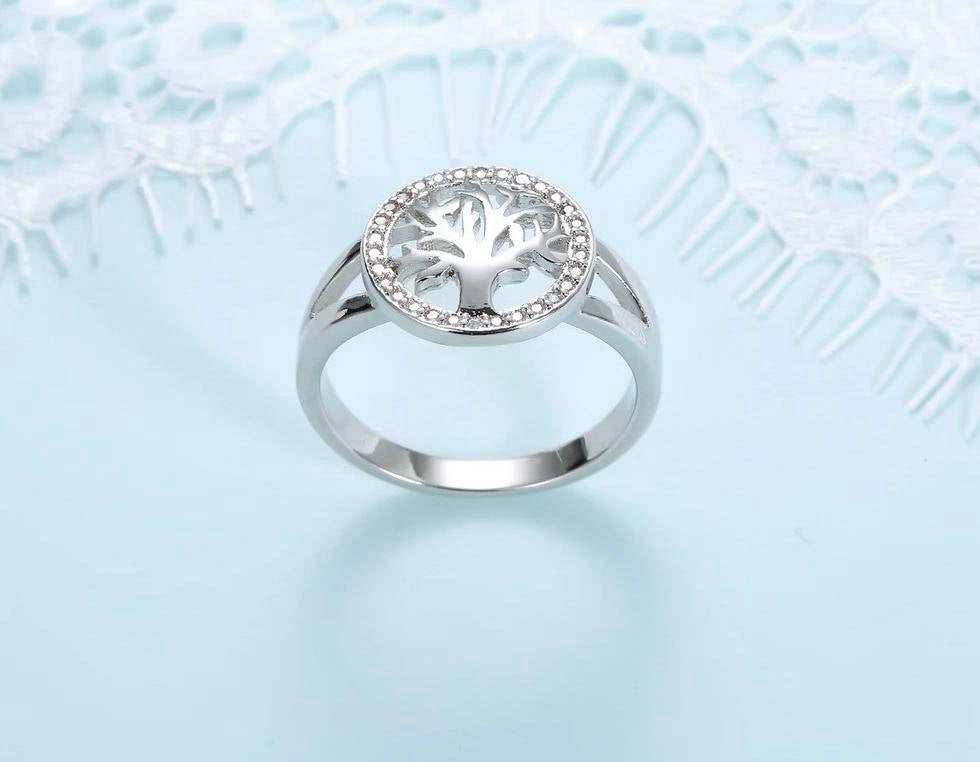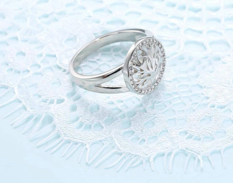 This Sterling Silver 925 Tree of Life ring is subtle and elegant. Its beauty is enhanced by a circle of small, sparkling zirconia crystals!
