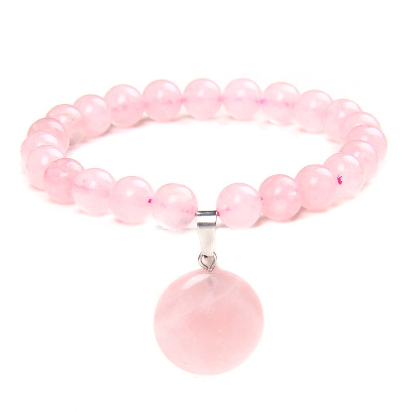 Here is the most fashionable rose quartz bracelet from our vast collection! This bracelet is made of natural rose quartz stones and elastic string, making it comfortable to wear and easy to put on. The light and gentle pink tone of the stones is beautiful and calming, making this bracelet the perfect and trendy accessory to wear when you need a moment of relaxation.