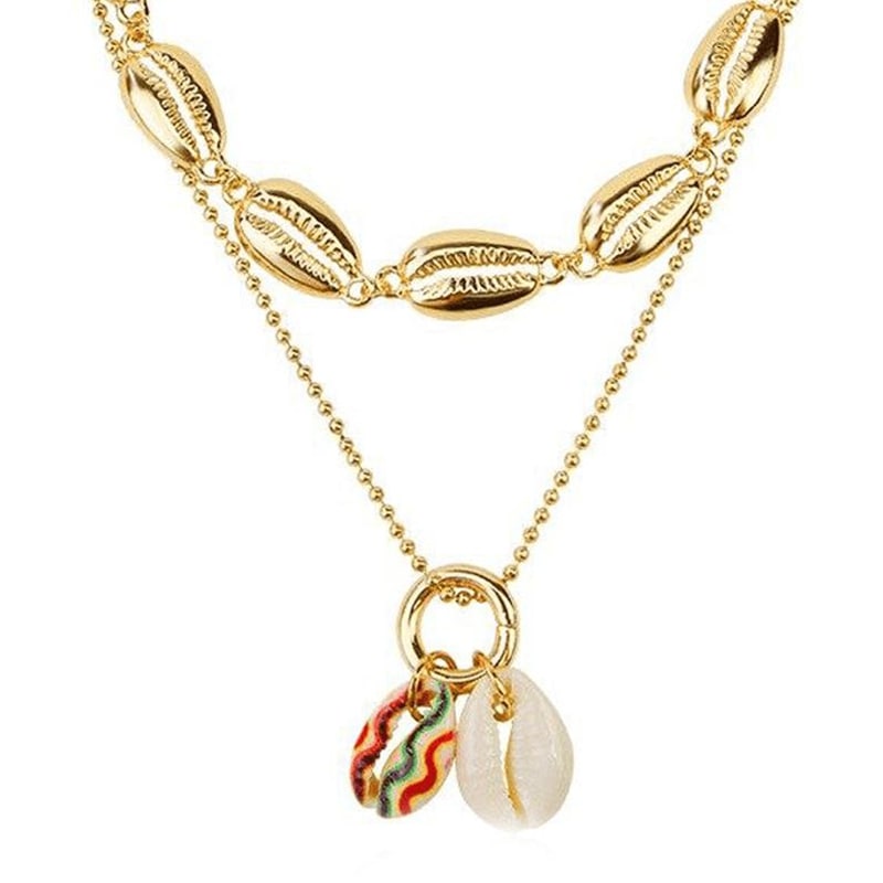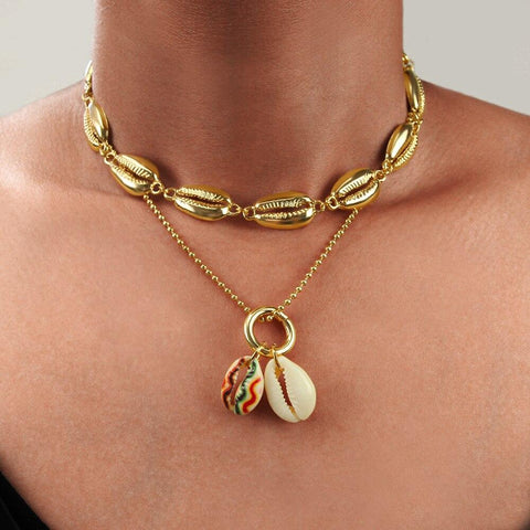 This trendy shell necklace is a choker, yet it remains stylish and trendy — perfect if you're looking for a contemporary accessory to add a special touch to your look. To contrast with the colours of this shell necklace, you could wear it with a black neckline.
