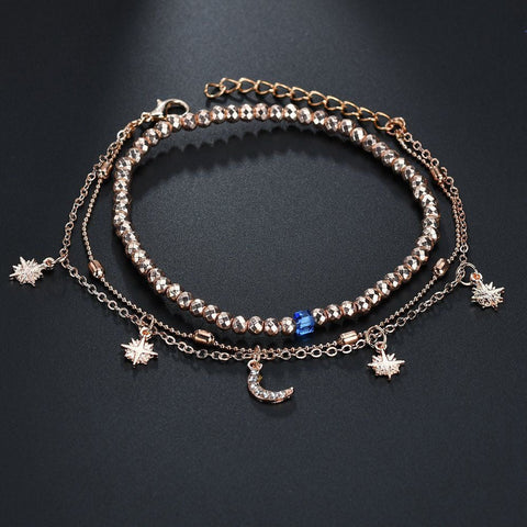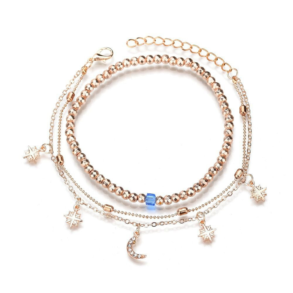 Achieve an elegant yet bohemian look with this triple anklet. Crafted from high-quality gold-toned metal, it's the perfect accessory for any summer outfit. Enjoy the lightness of the design and the easy-to-use adjustable clasp. Get ready to turn heads with this beautiful anklet!
